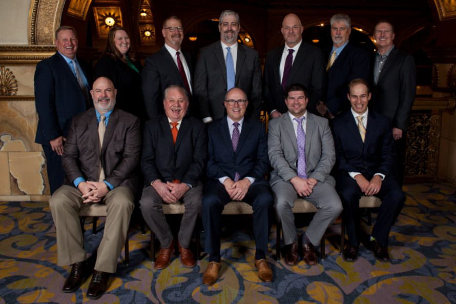Back from left to right: Ed Staunton of Tulelake, California; Heidi Randall of Friesland, Wisconsin; Steve Streich of Kalispell, Montana; Chris Hansen of Bliss, New York; Steve Elfering of Idaho Falls, Idaho; Jeff Jennings of Camden, North Carolina; and Blair Richardson, Potatoes USA CEO. Front: Mike Carter of Rosholt, Wisconsin; Phil Hickman of Horntown, Virginia; Marty Myers of Boardman, Oregon; Jaren Raybould of Saint Anthony, Idaho; and Jared Smith of Alamosa, Colorado