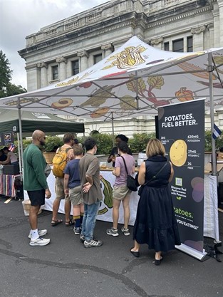 In honor of September’s National Potato Month, those at the Market received a full potato VegU education as potatoes were featured as the Vegetable of the Week! Attendees learned how Potatoes Fuel Performance, received education handouts and enjoyed delicious samples of Pesto Potato Salad.